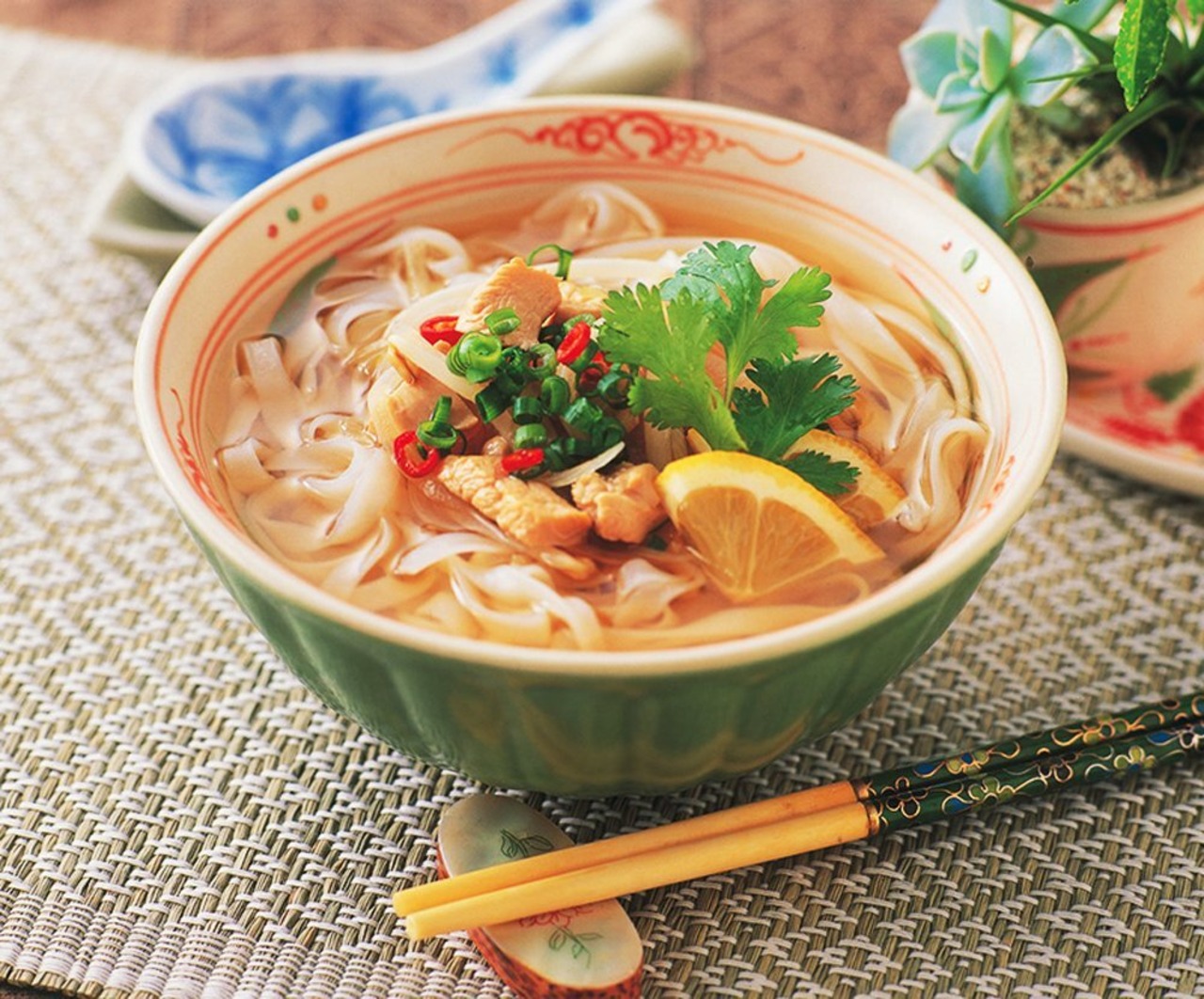 お米とでん粉からつくったツルツル・モチモチとした食感の5mm幅の15㎝カットの平めんです。本格的な製造方法でつくった1枚のお米のシートを5mm幅にカットした平めんですのでスープメニューにとてもよく合います。とくにアジア・エスニックメニューとの相性がとても良いです。