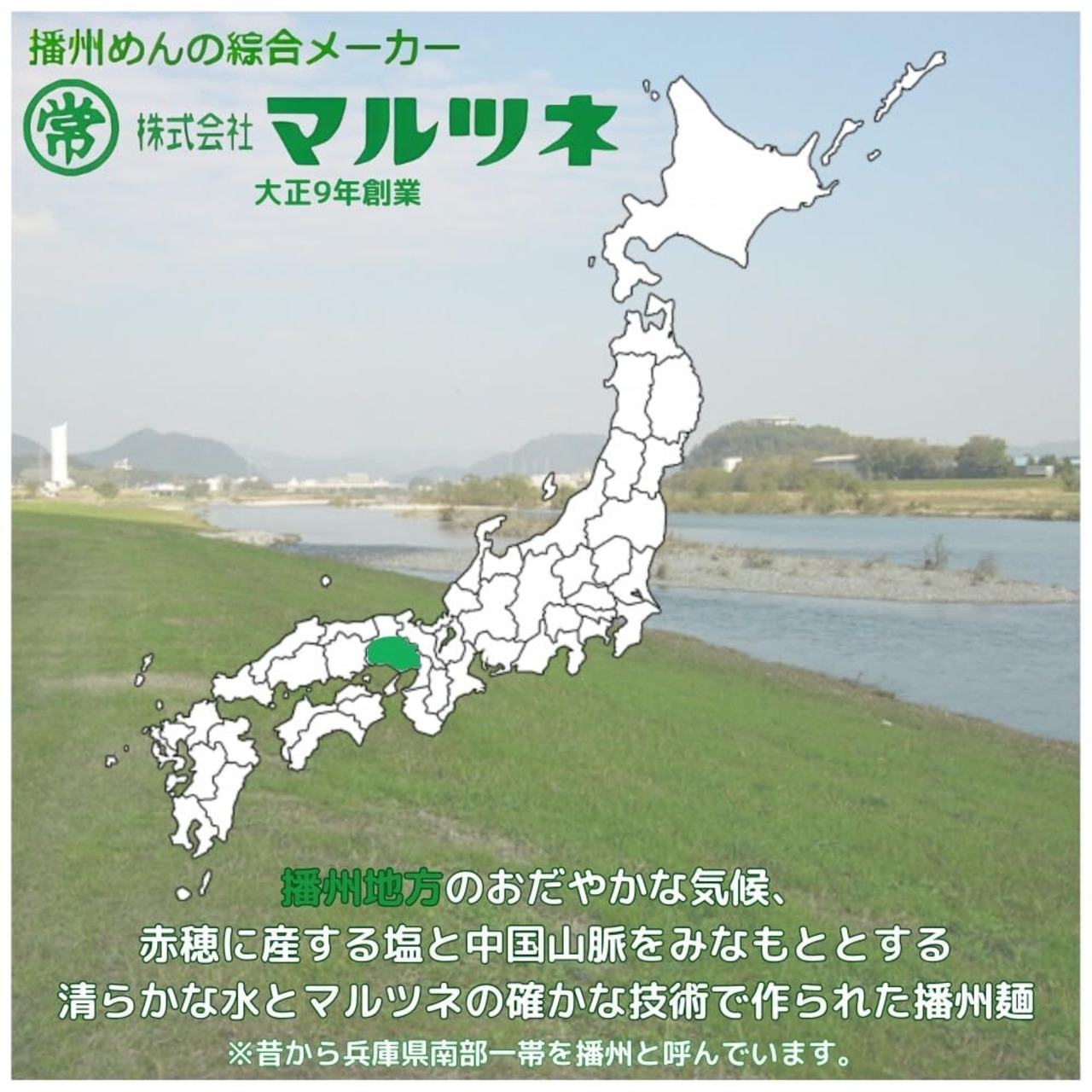 播州地方の穏やかな気候、赤穂の塩、そして中国山脈から流れる清らかな水が揃い、マルツネの技術によって作られる播州麺は、懐かしい日本の味わいを感じさせてくれます。心を込めてお届けするこの一品を、多くの方に存分にご賞味いただけることが、何よりの喜びです。