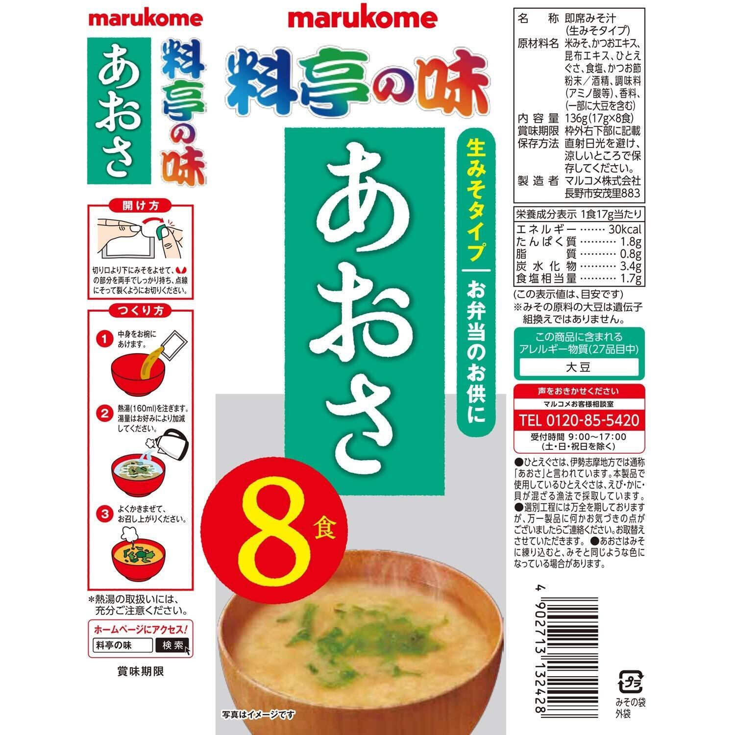 マルコメ 生みそ汁 料亭の味 あおさ 8食 ×12個