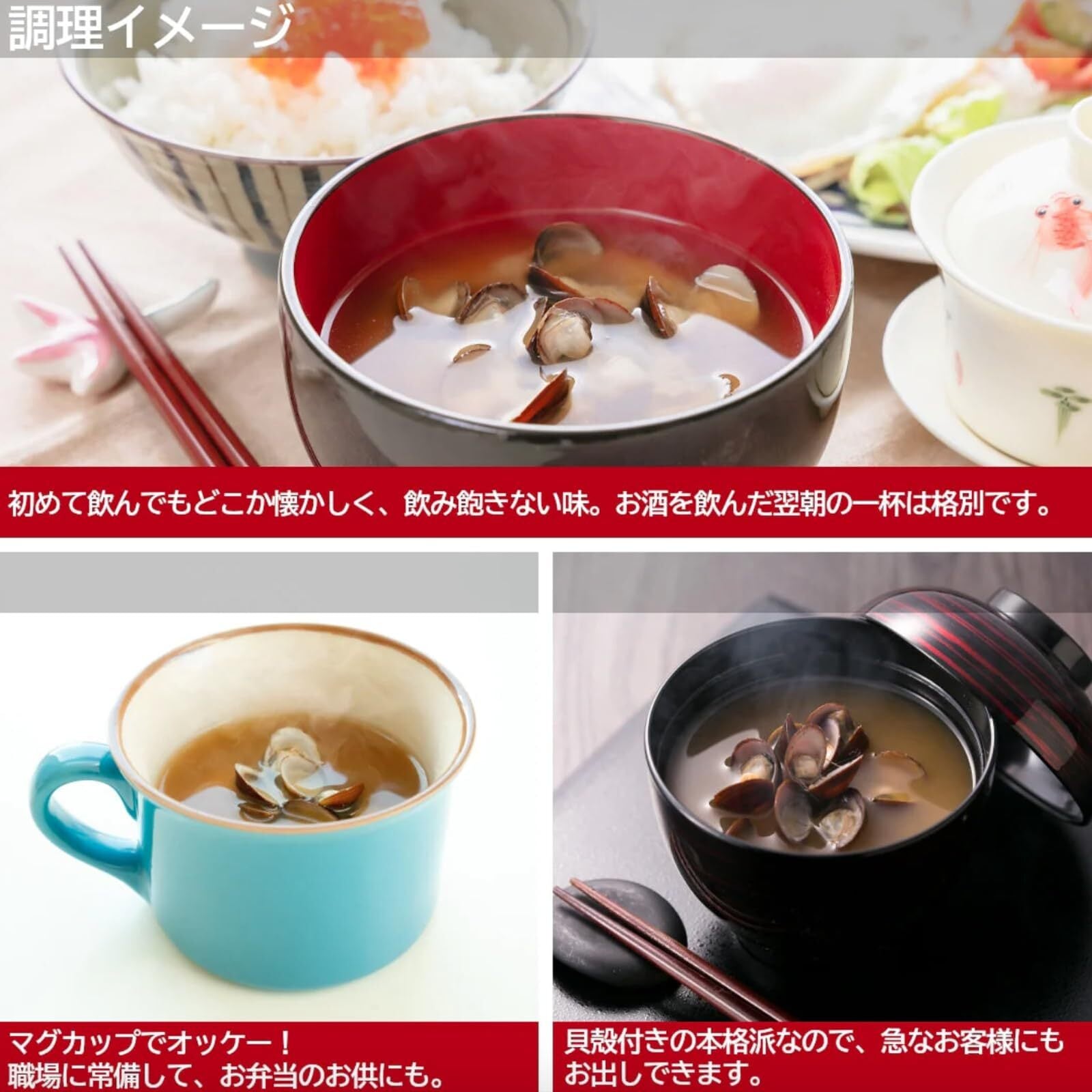【お召し上がり方】具と調味みそを容器に入れ約180mlの熱湯を注ぎ、充分にかき混ぜてからお召しあがりください。お湯の量はお好みにより加減してください。 しじみの鉄分は身のほうに含まれますので、ぜひ身も味わってみてください。