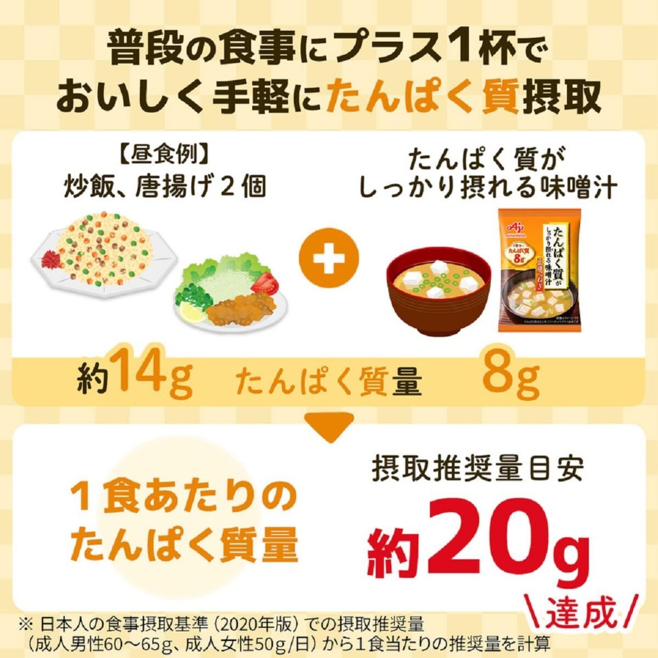 一食当たり8gのたんぱく質が摂取できる即席味噌汁