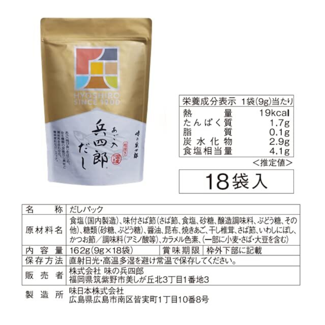 味の兵四郎公式ショップ【2点セット正規品】あご入兵四郎だし18袋入×2(1袋9g)あご入兵四郎だし 国産素材 あごだし 兵四郎 (通常タイプ)