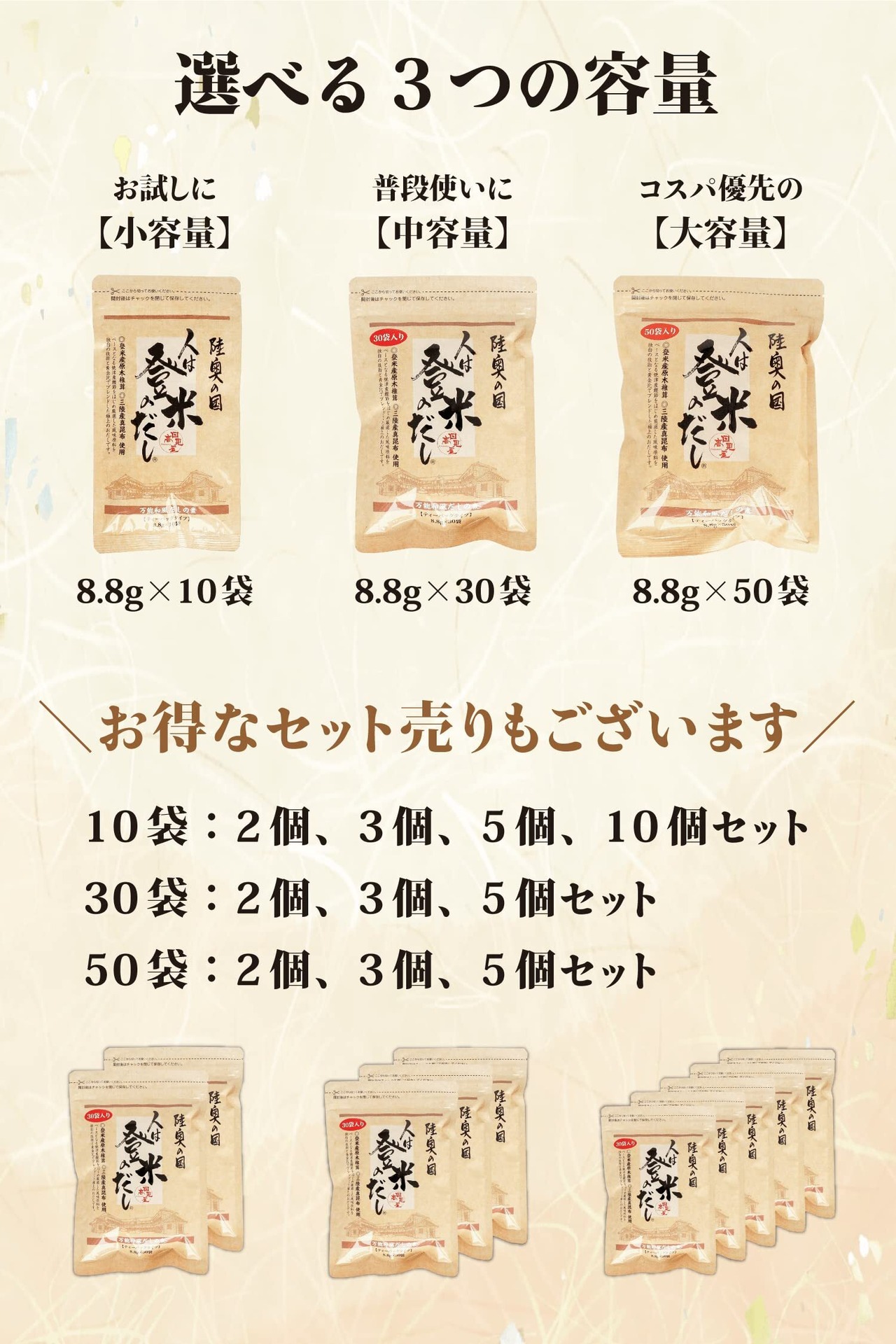 香りと旨味が「人は登米のだし」は、使いやすいティーバックタイプで、「簡単」に美味しいだしがとれます。 汁物はもちろん、煮物、鍋、炊きこみご飯など料理の幅が広がります。 開封後はチャックもついているので保存にも便利です。