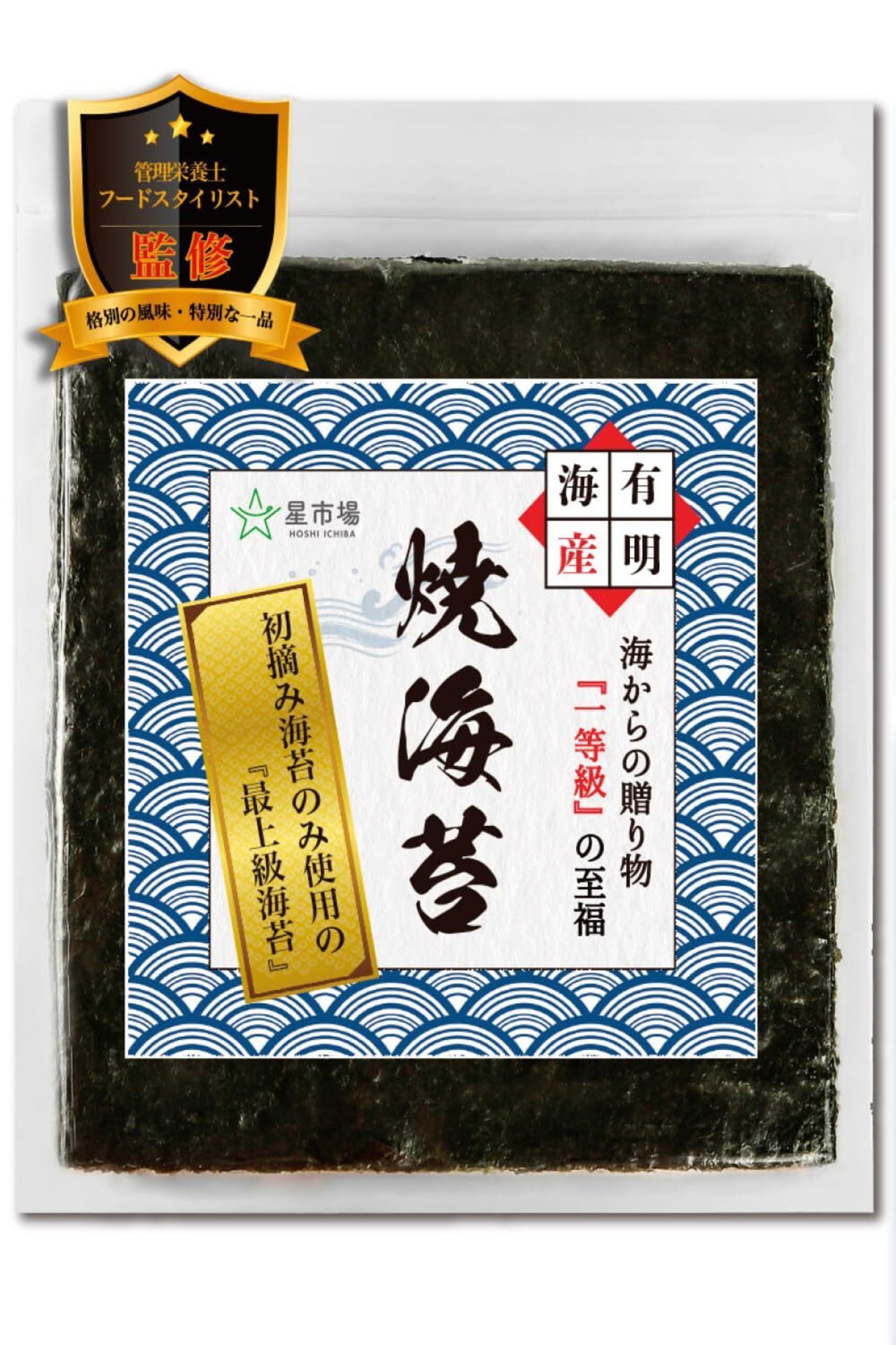 星市場 焼き海苔 【管理栄養士監修】 全型 20枚入 上級海苔使用 初摘み一番海苔のみ使用 有明海産 チャック付 こだわりの遠赤外線製法で製造 (20枚入(1袋))