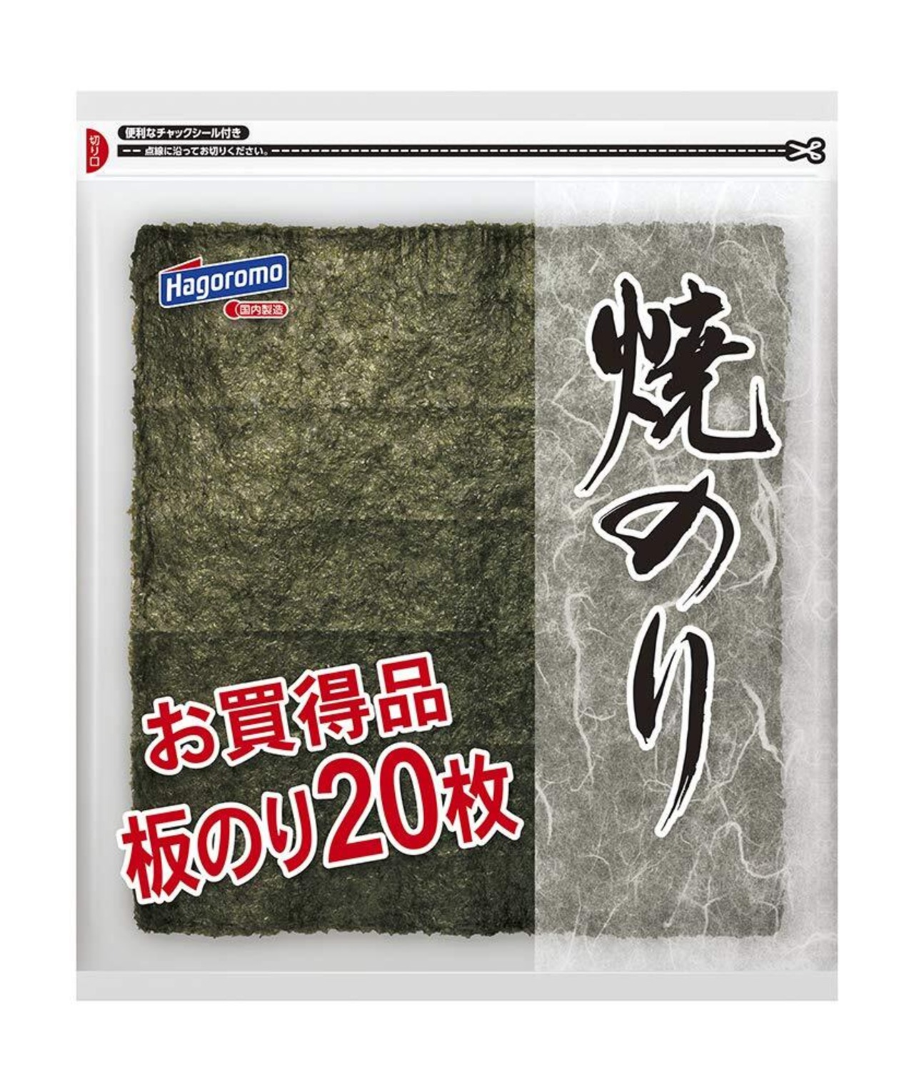国内産の乾のりをていねいに焼き上げました。幅広く使用できる板のりが20枚入ったお徳用タイプです。そのまま太巻寿司に、半分に切って細巻寿司や手巻寿司に、1/3に切っておむすびや焼き餅にその他細かく切って、ちらし寿司、ざるそば、焼きそば、どんぶりもの、スパゲッティなどの料理にもご使用ください。のりはいろいろな料理や素材とよく合い、一緒に食べる物をおいしく引き立てます。