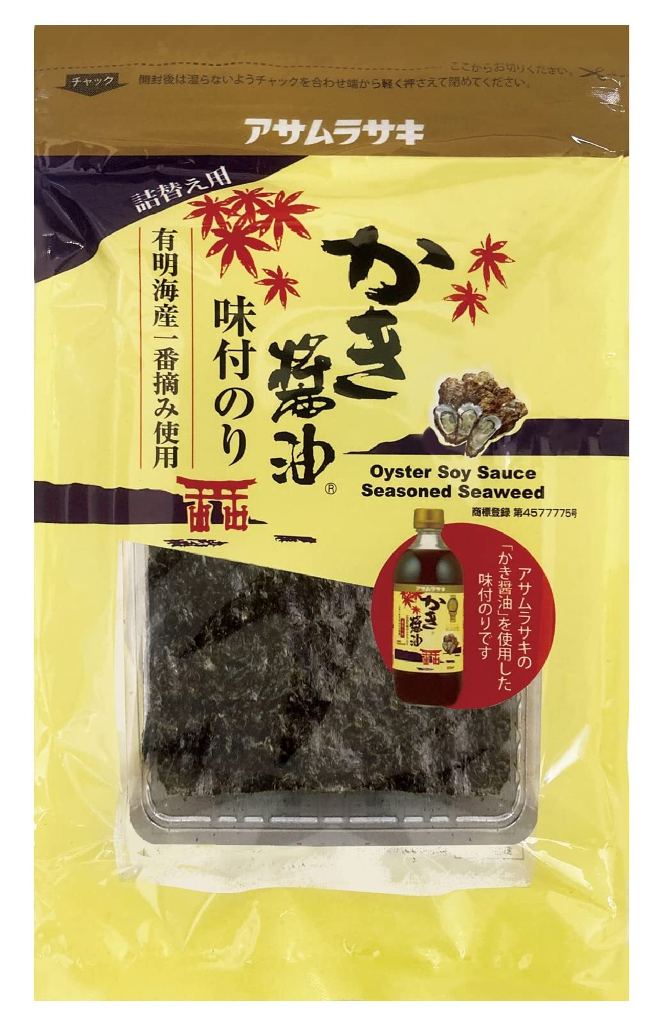 【原材料】乾のり(有明海)、砂糖、しょうゆ加工品、黒糖、食塩、米発酵調味料、こんぶエキス、えびだし、かきエキス/調味料(アミノ酸等)、香辛料抽出物