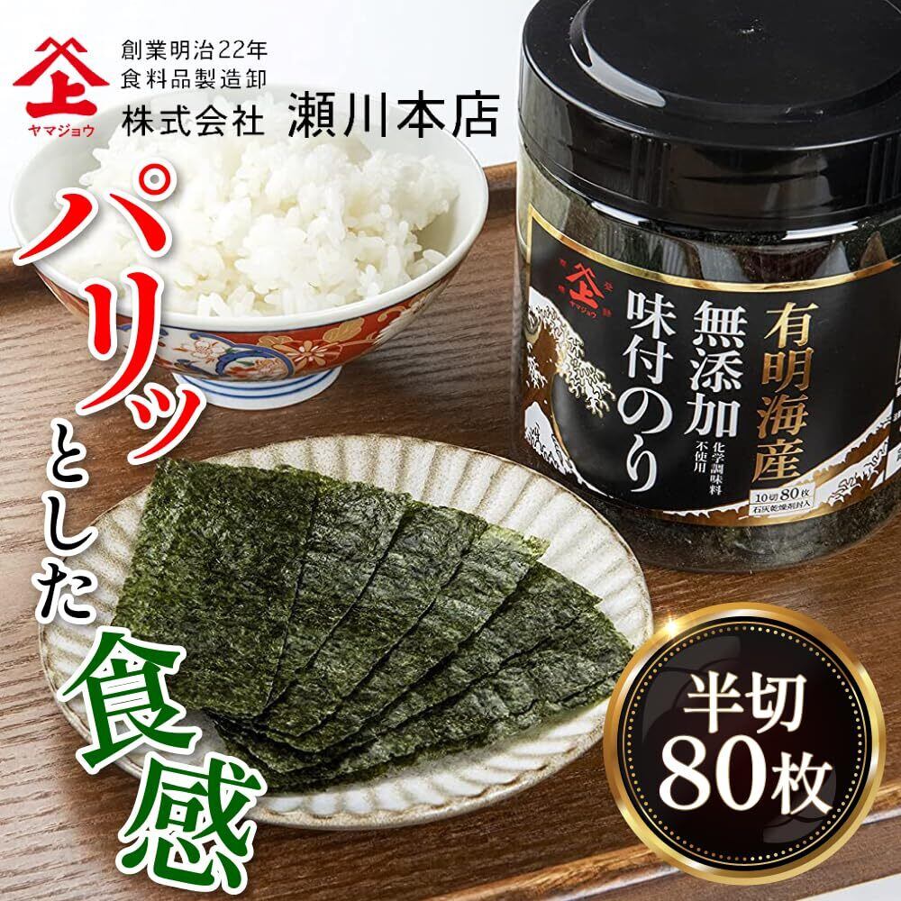 瀬川本店 有明海産 無添加 味付け海苔 10切 80枚 (6個入り)
