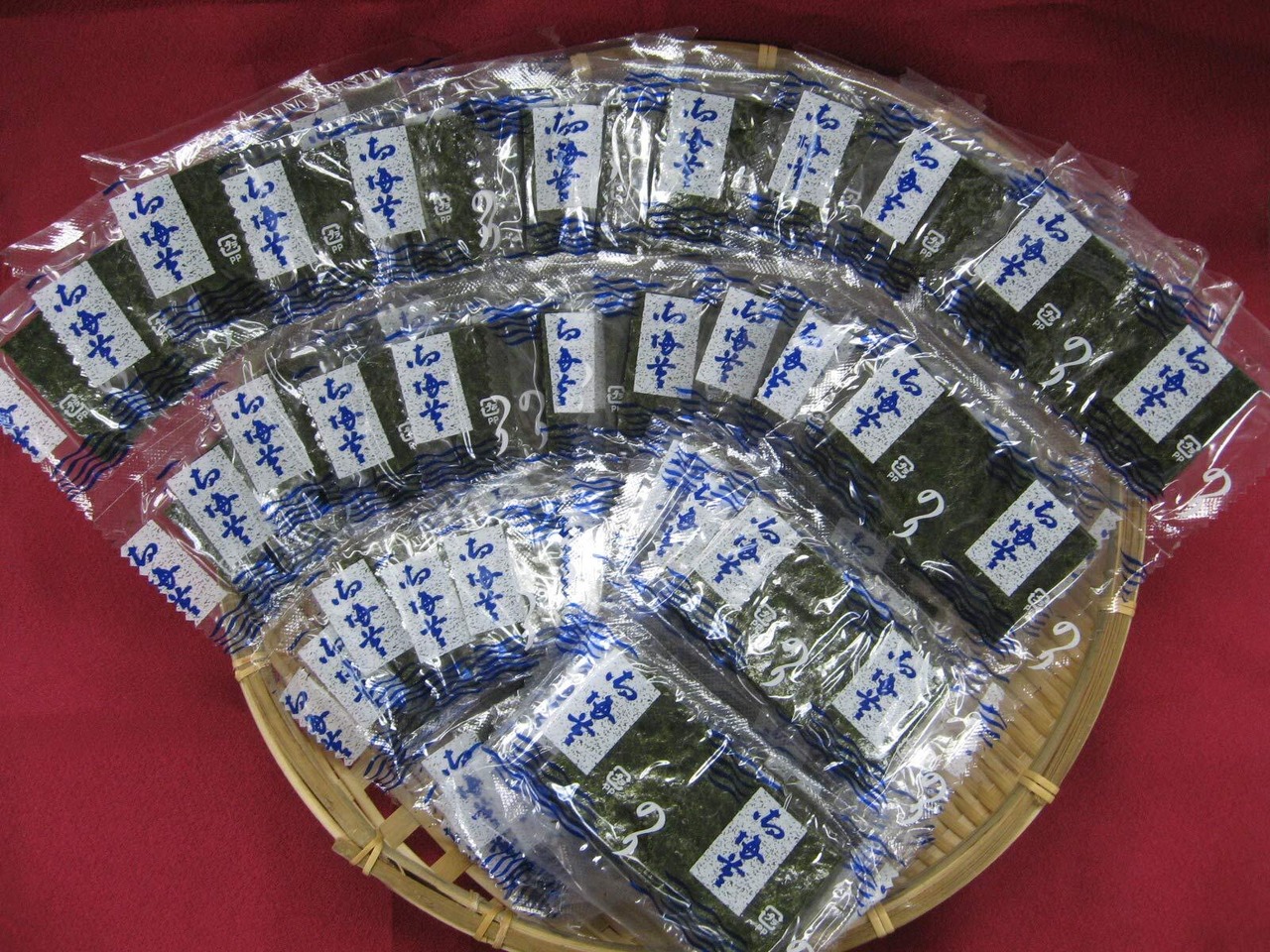 大判8切5枚入の海苔がたっぷり50袋入っております。(湿気対策として特大サイズの乾燥剤を封入しています。)