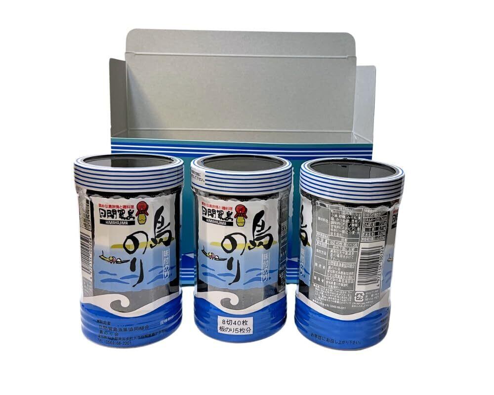 日間賀島 島のり 「味付け海苔」です。 日間賀島のお土産を購入されるお客様に 一番好まれるお手頃サイズです。 専用箱に入っています。 ご旅行の際の事前注文にいかかですか? イベントの景品にも多くご注文頂いてます。 お試しのお客様にも大変人気の商品です。 賞味期限:6か月 高温多湿を避けて保存して下さい。