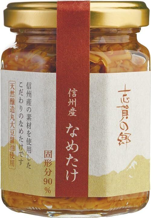 長野県産えのき茸と信州産丸大豆醤油を使用し煮込んだなめたけシリーズ「志賀の郷」。