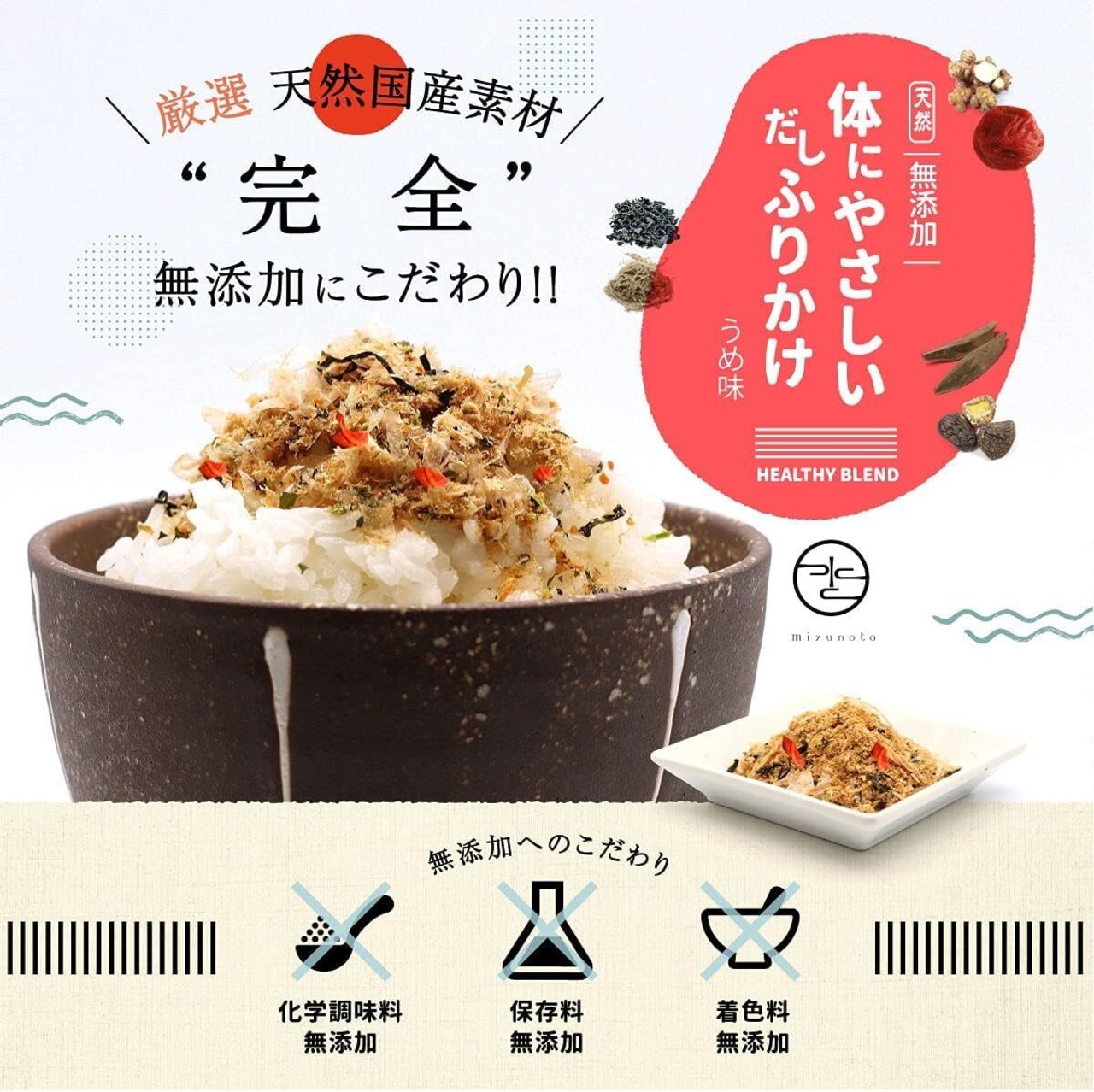 ふりかけ 無添加 国産 体にやさしいだしふりかけ 紀州うめ 梅味 うめ味 mizunoto 天然 健康 40g チャック付き (1袋)