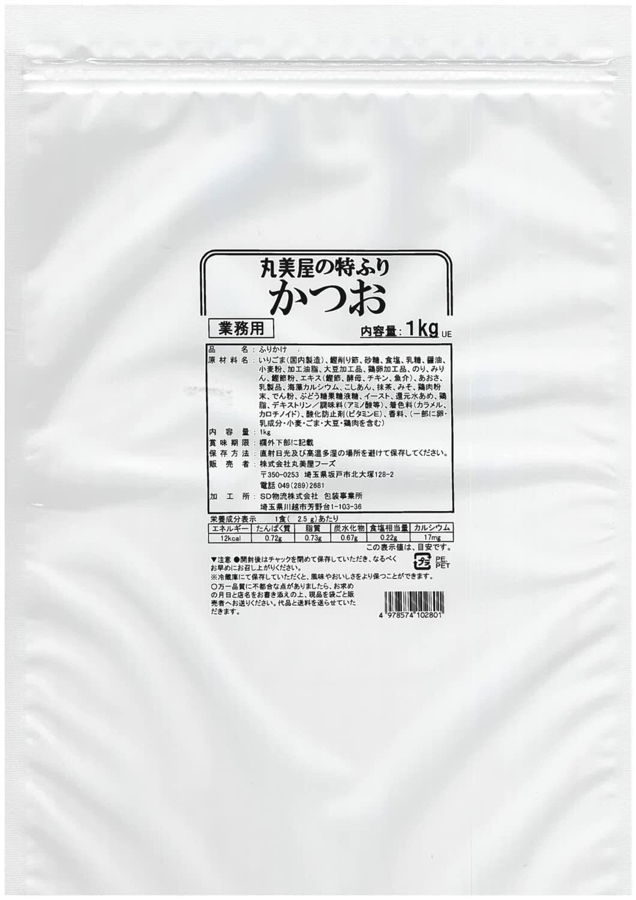 原材料:ごま、鰹削り節、砂糖、食塩、乳糖、醤油、小麦粉、加工油脂、鶏卵加工品、大豆加工品、のり、みりん、エキス(鰹節、チキン、酵母、鰹、魚介)、鰹節粉、あおさ、乳製品、海藻カルシウム、こしあん、抹茶、みそ、鶏肉粉末、でん粉、ぶどう糖果糖液糖、イースト、デキストリン、還元水あめ、鶏脂/調味料(アミノ酸等)、香料、カロチノイド色素、酸化防止剤(ビタミンE)