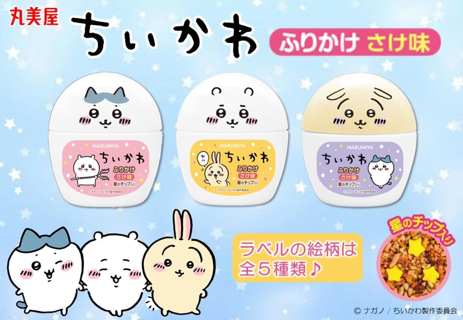 ・人気の<さけ味>のふりかけを容器に詰めました。・かわいい星のチップが入った見た目にも楽しいふりかけです。・かわいい容器入りだから、卓上での保管や持ち運びにも便利です。・キャップのデザインは、ちいかわ、ハチワレ、うさぎの全3種類。ちいかわ2個、ハチワレ2個、うさぎ1個のセットでお届けします。