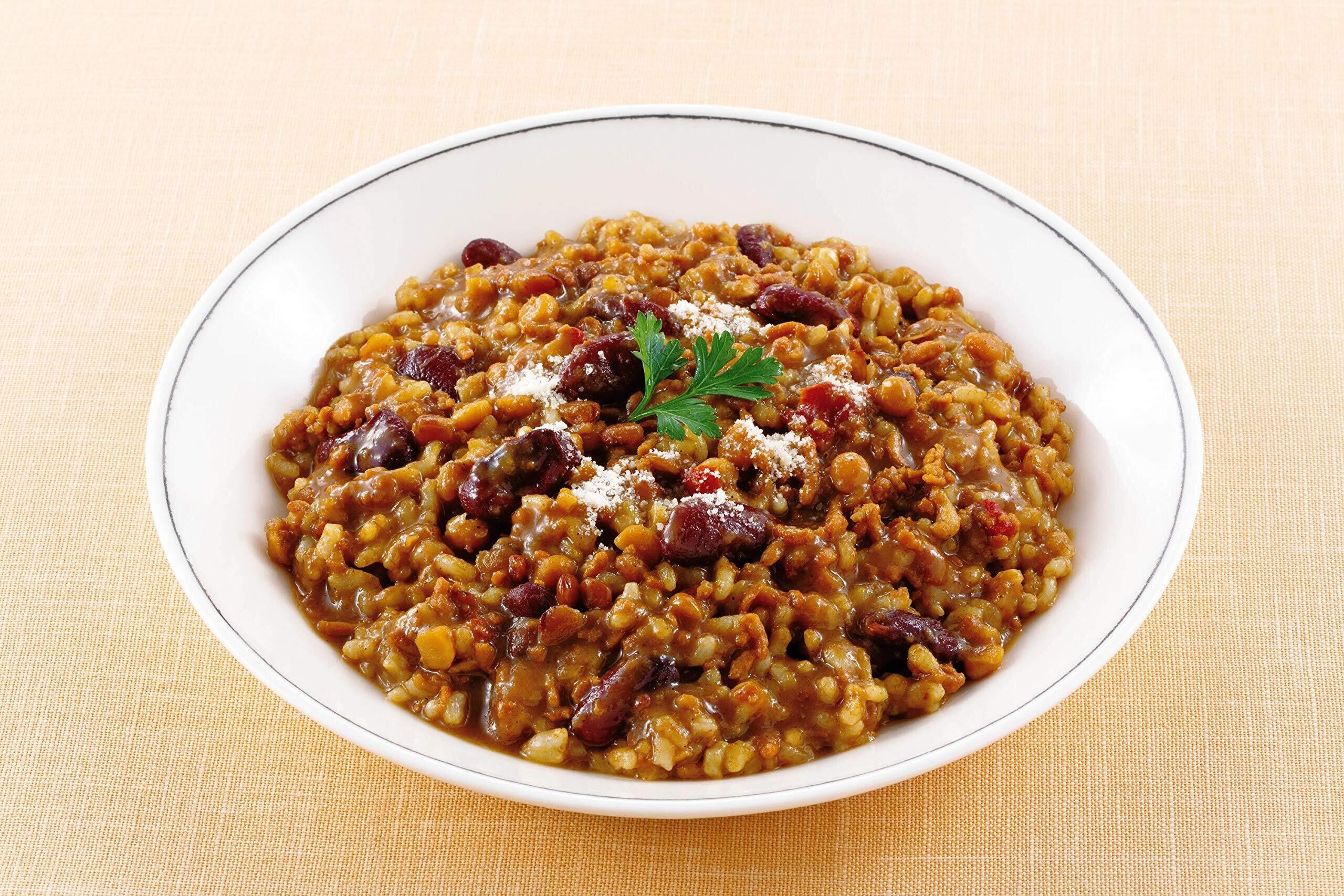 ひよこ豆、レンズ豆、レッドキドニーのふくよかな旨み。クミン、コリアンダーなどのスパイスが香るキーマカレーです。