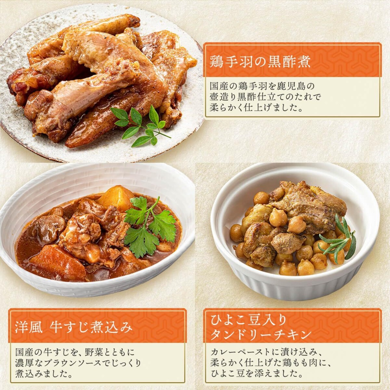 暮らしに寄り添い 食卓をあたたかく彩る 国分 tabete まごころを食卓に 膳 と 洋食 の 老舗 レストラン 神戸開花亭 の 常温保存 お惣菜 シリーズ ええもん広場 オリジナル 国産 乾燥野菜 付きの 惣菜セット です。