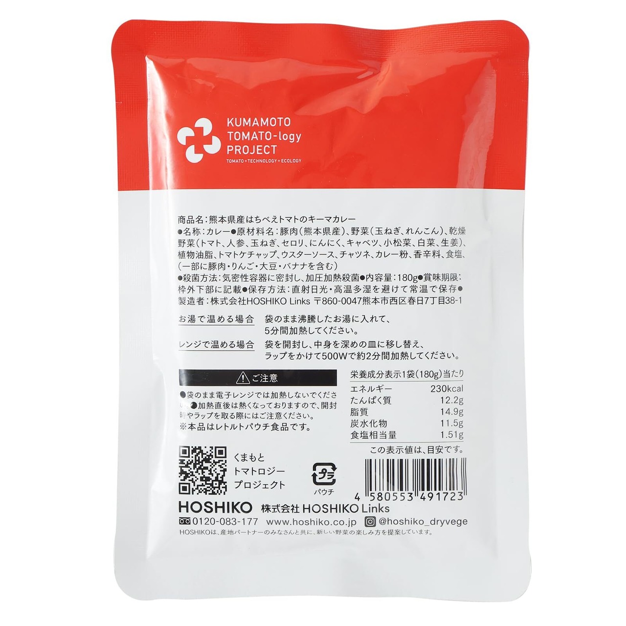HOSHIKO 熊本産 はちべえトマトの キーマカレー 中辛 180g×4袋 セット グルテンフリー カレー レトルト 国産 りんどうポーク使用 無添加 乾燥野菜 スパイス