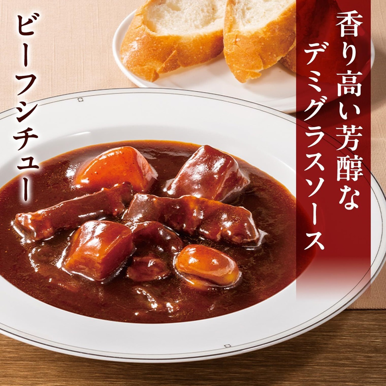 【ビーフシチュー】牛肉は真空状態で煮込むことで、やわらかな食感に仕上げました。たっぷり入った具材と、芳醇なデミグラスソースが楽しめる贅沢なビーフシチュー。 熟練の料理人が作り上げた当社オリジナル、レトルトタイプの一品です。