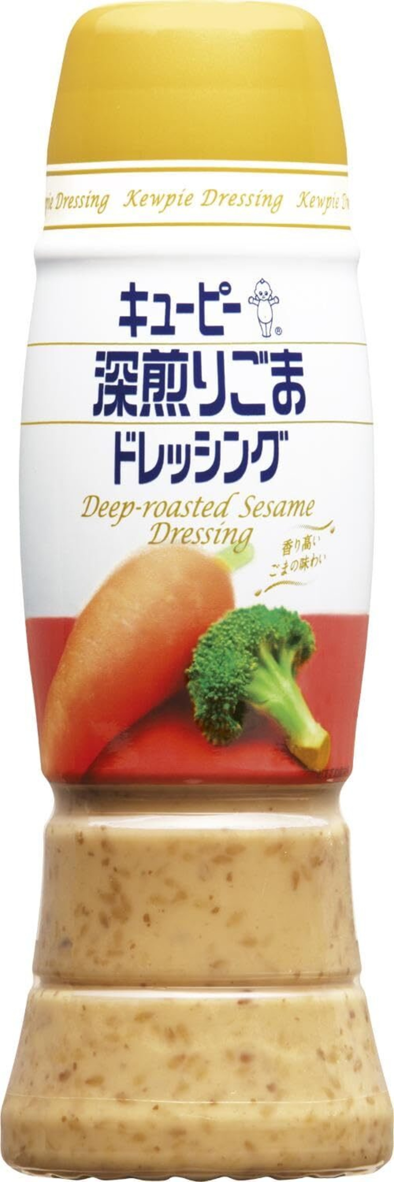 原材料: 食用植物油脂(国内製造)、しょうゆ、砂糖、醸造酢、ごま、しいたけエキス、食塩、卵黄/香辛料抽出物、調味料(アミノ酸)、増粘剤(キサンタンガム)、甘味料(ステビア)、(一部に卵・小麦・ごま・大豆・りんごを含む)