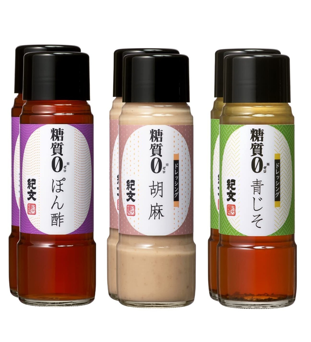 紀文 糖質0ドレッシング 3種 ×2本 (ぽん酢/胡麻ドレッシング/青じそドレッシング) 糖質オフ 糖質制限/ドレッシング アソート セット/国内製造