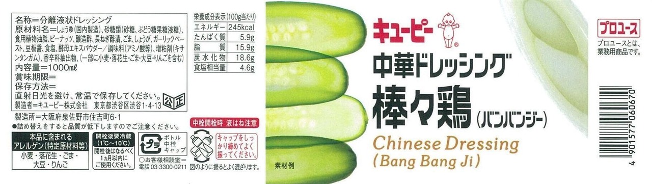 キユーピー 1L 中華ドレッシング 棒々鶏 1000ml (業務用) 大容量