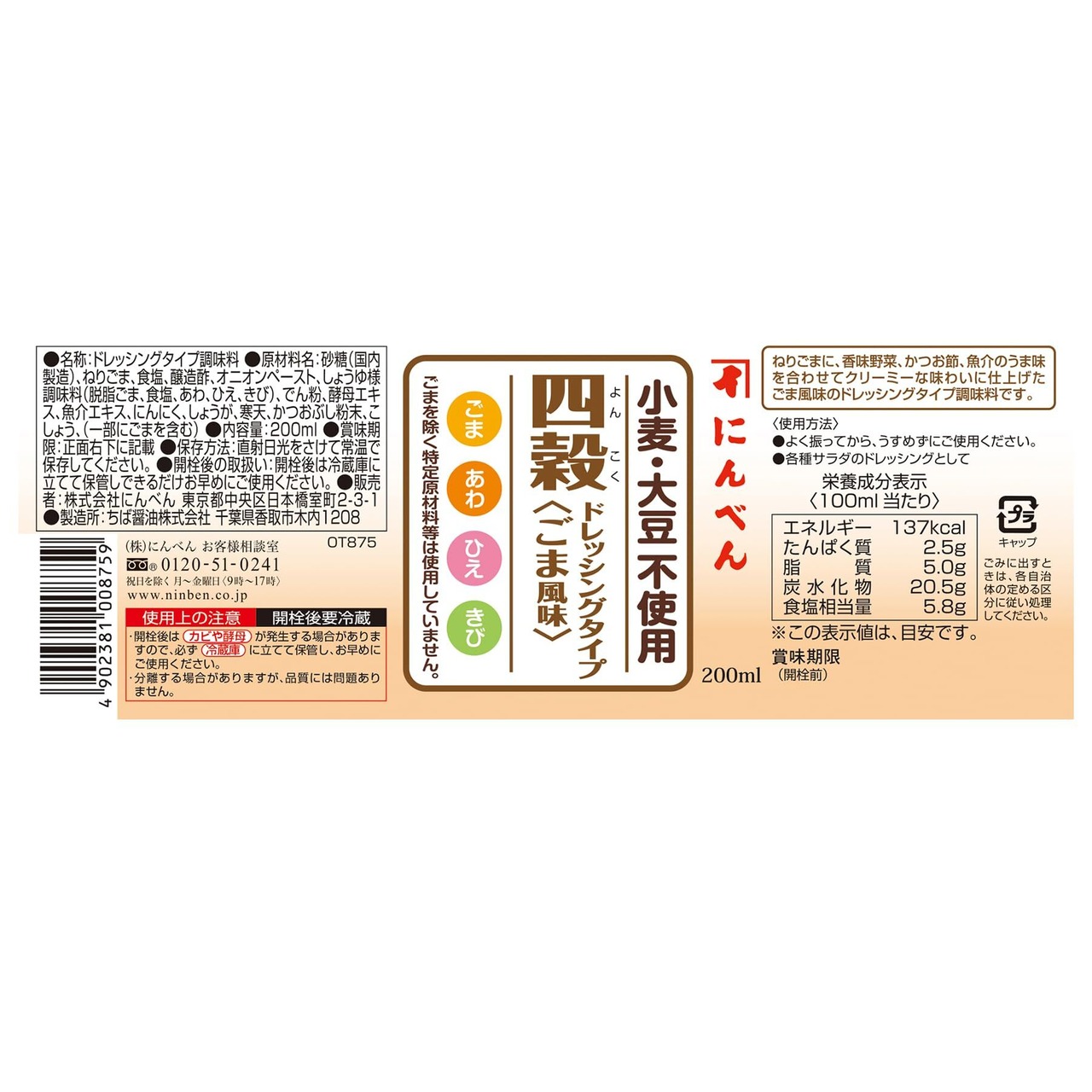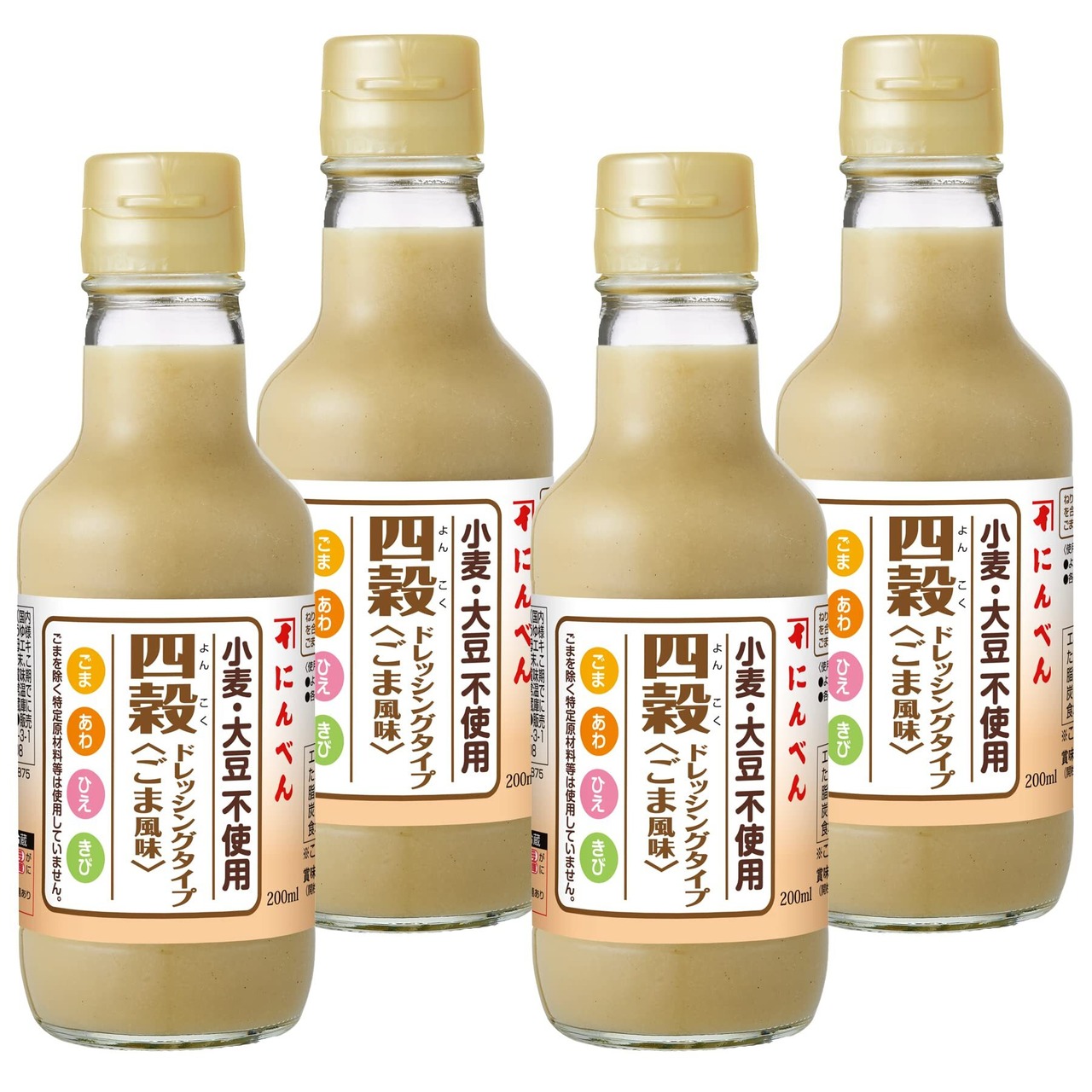 にんべん 四穀ドレッシングタイプ ごま風味 200ml×4本 [かつお節 ねりごま 香味野菜 グルテンフリー 小麦・大豆不使用] 1699年創業 鰹節・だし専門店のにんべん