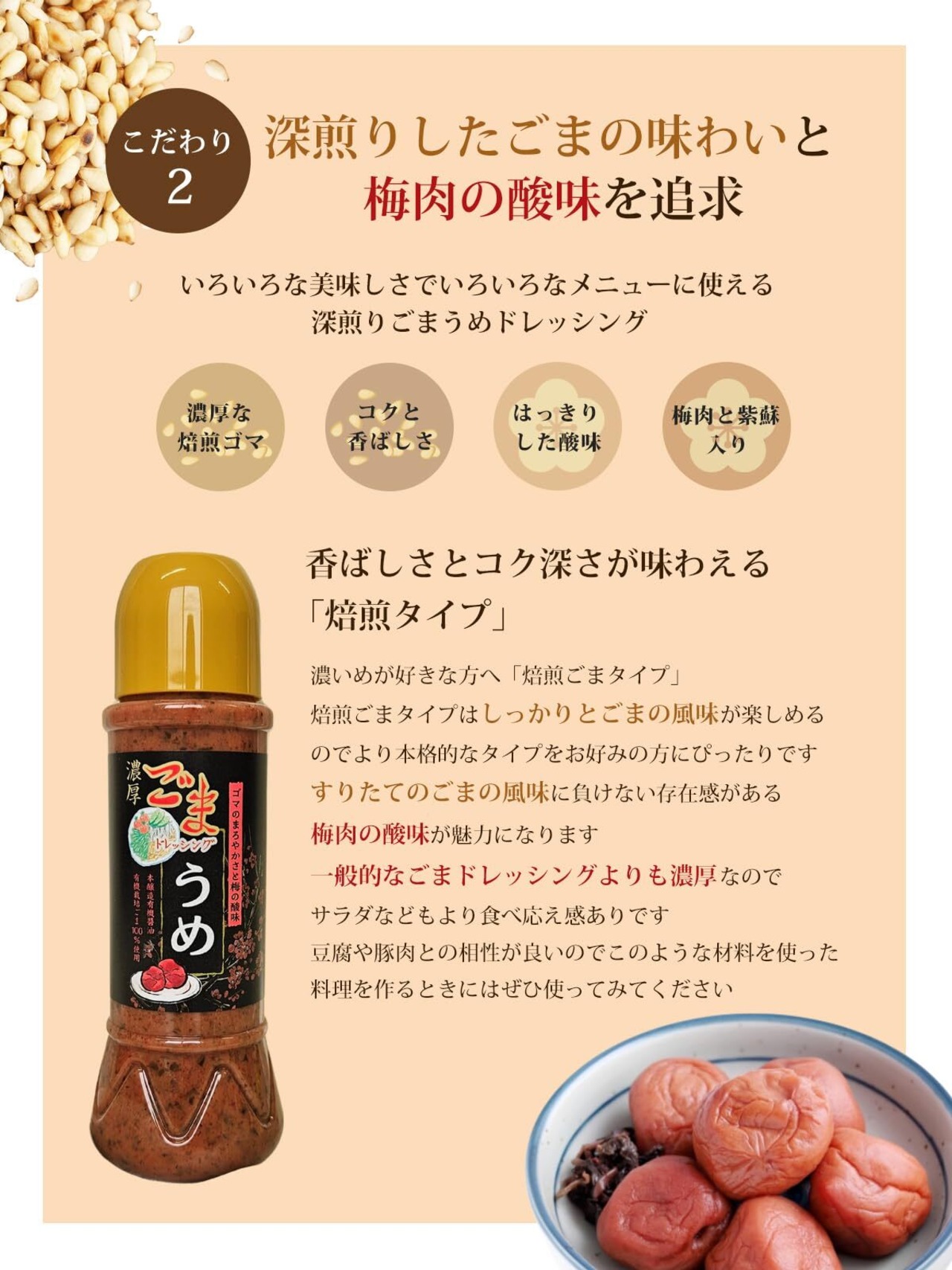 ごま好きが作った 濃厚ごまドレッシング(うめ味) 大/保存料・着色料無添加/有機栽培認証ごま100%使用/本醸造有機醤油使用 (うめ大 390ml)