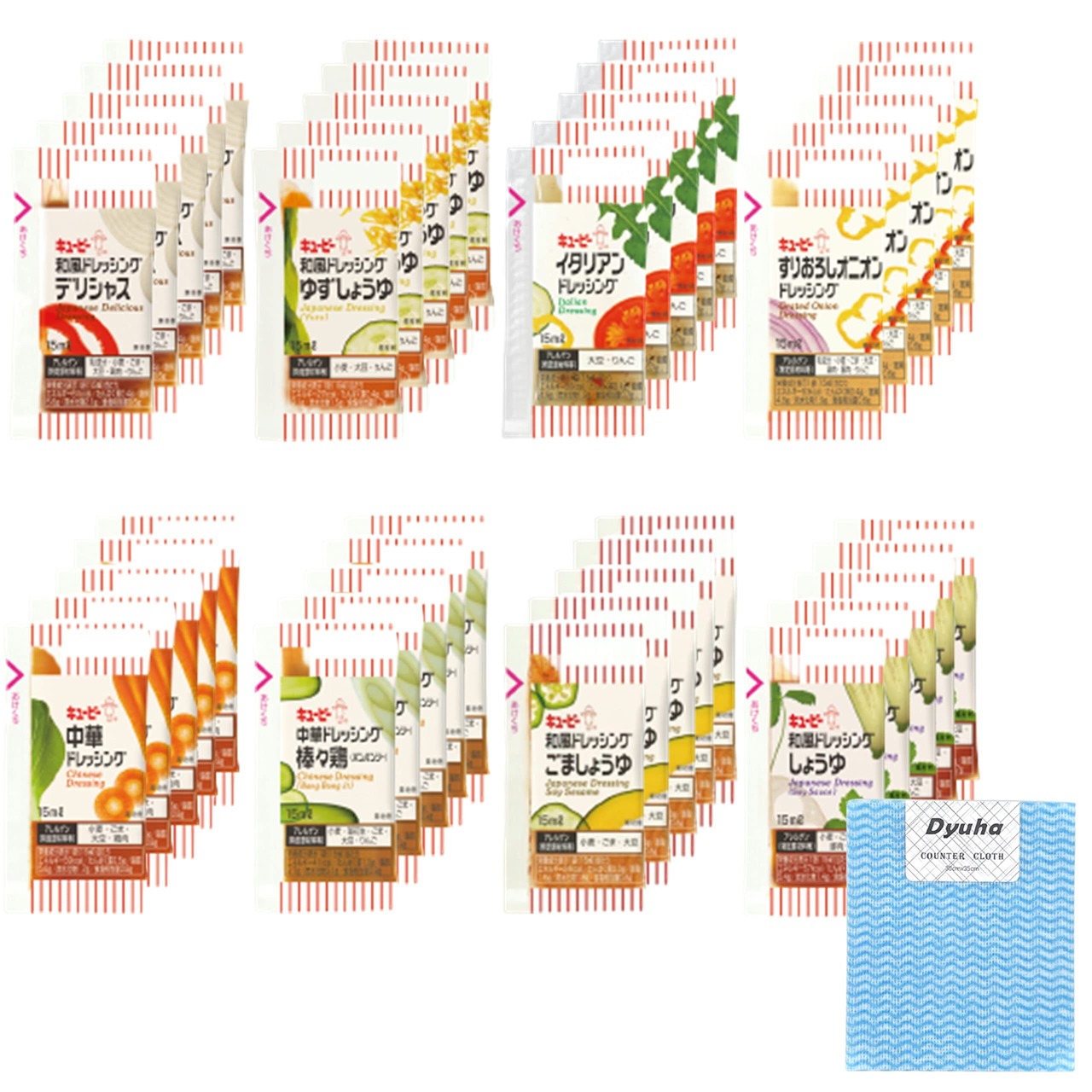 キューピー ドレッシング セパレートタイプ 小袋 8種アソート×各5袋 合計40袋 不織布ふきん(RH-04D)セット | 小分け 15ml 業務用