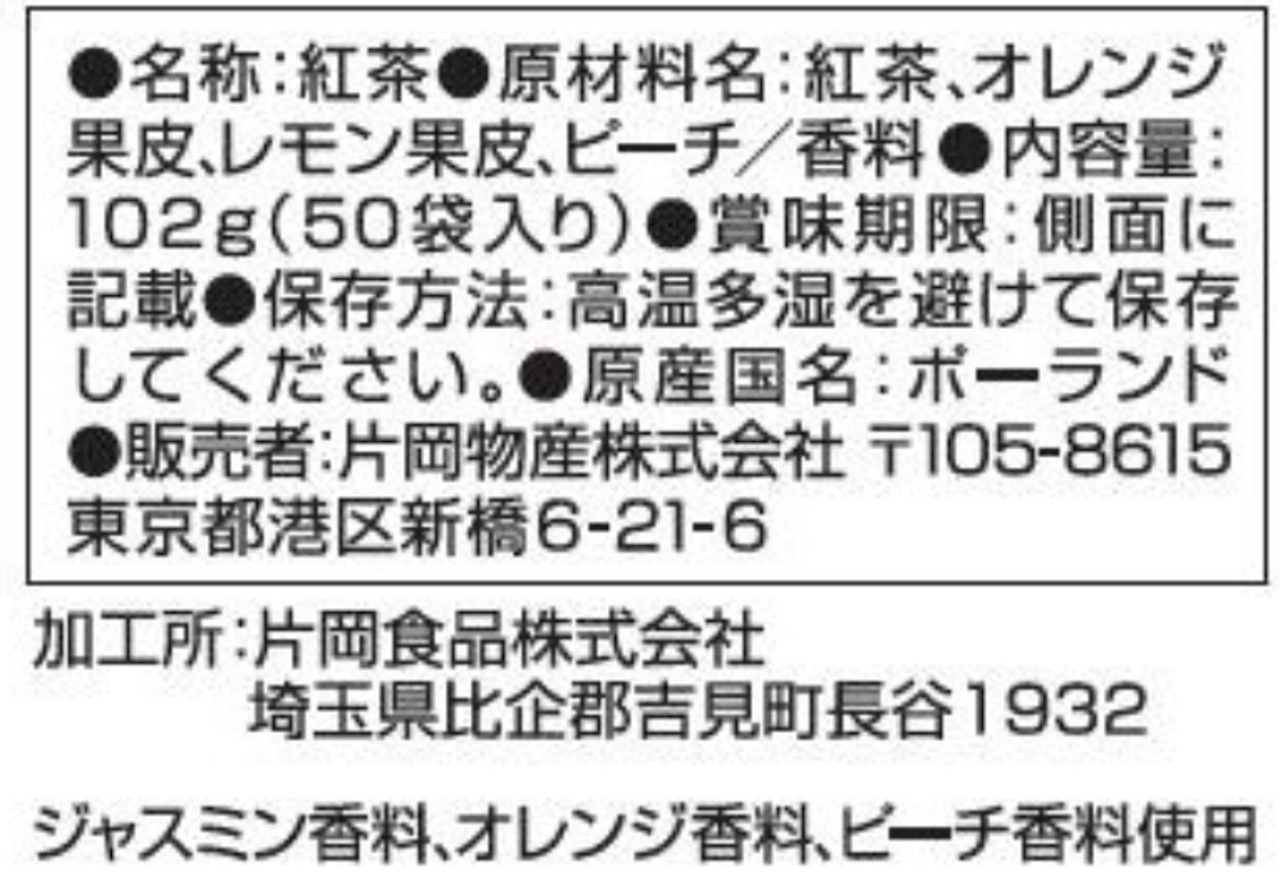 原材料:紅茶、オレンジ果皮、レモン果皮、ピーチ/香料