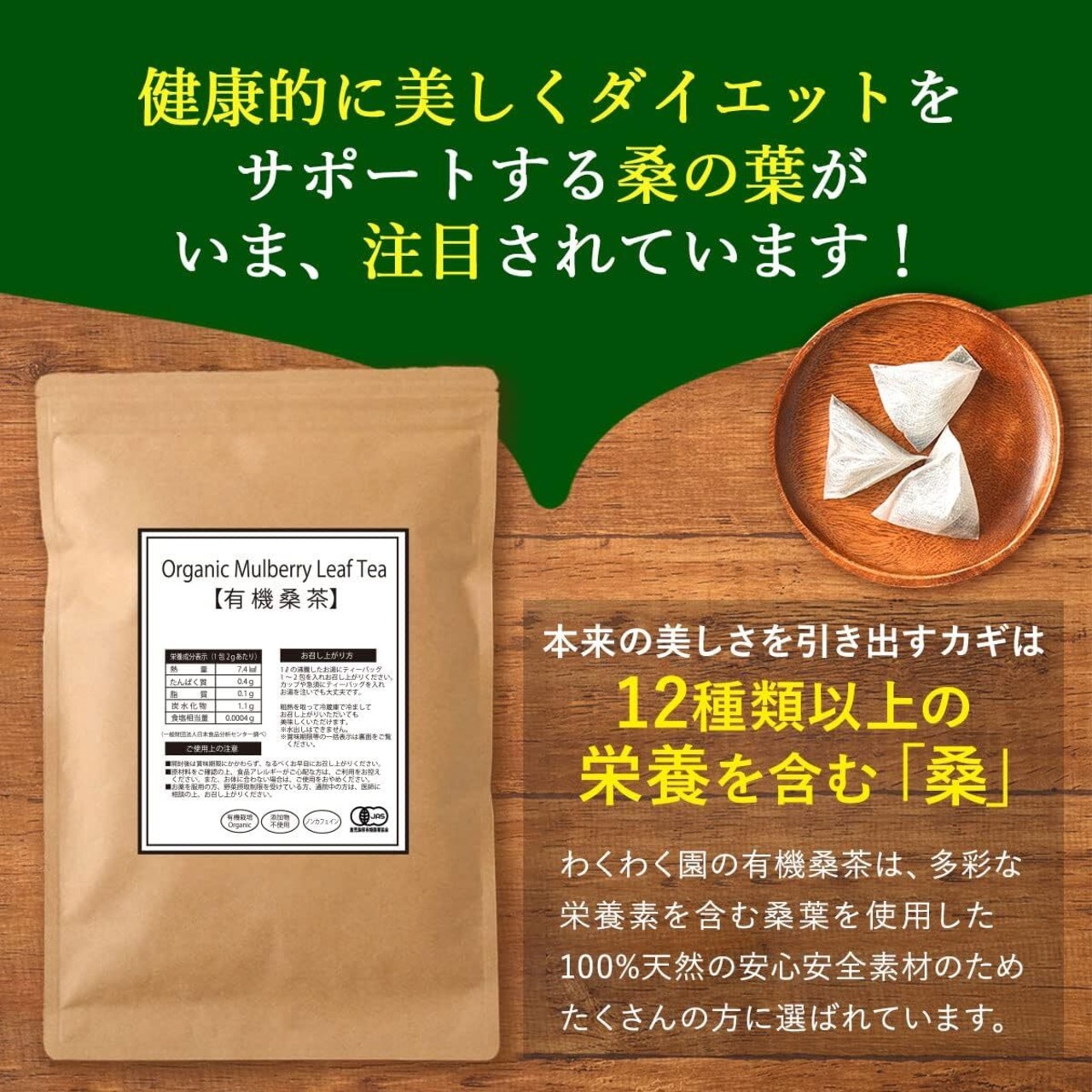 わくわく園 有機桑茶 ティーバッグ (100包) 国産 桑の葉茶 オーガニック 無農薬 ノンカフェイン 健康茶 自社焙煎