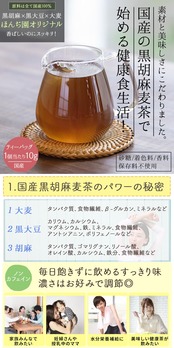 原材料名:大麦(国産)、黒大豆(遺伝子組み換えでない)(国産)、黒胡麻(国産)