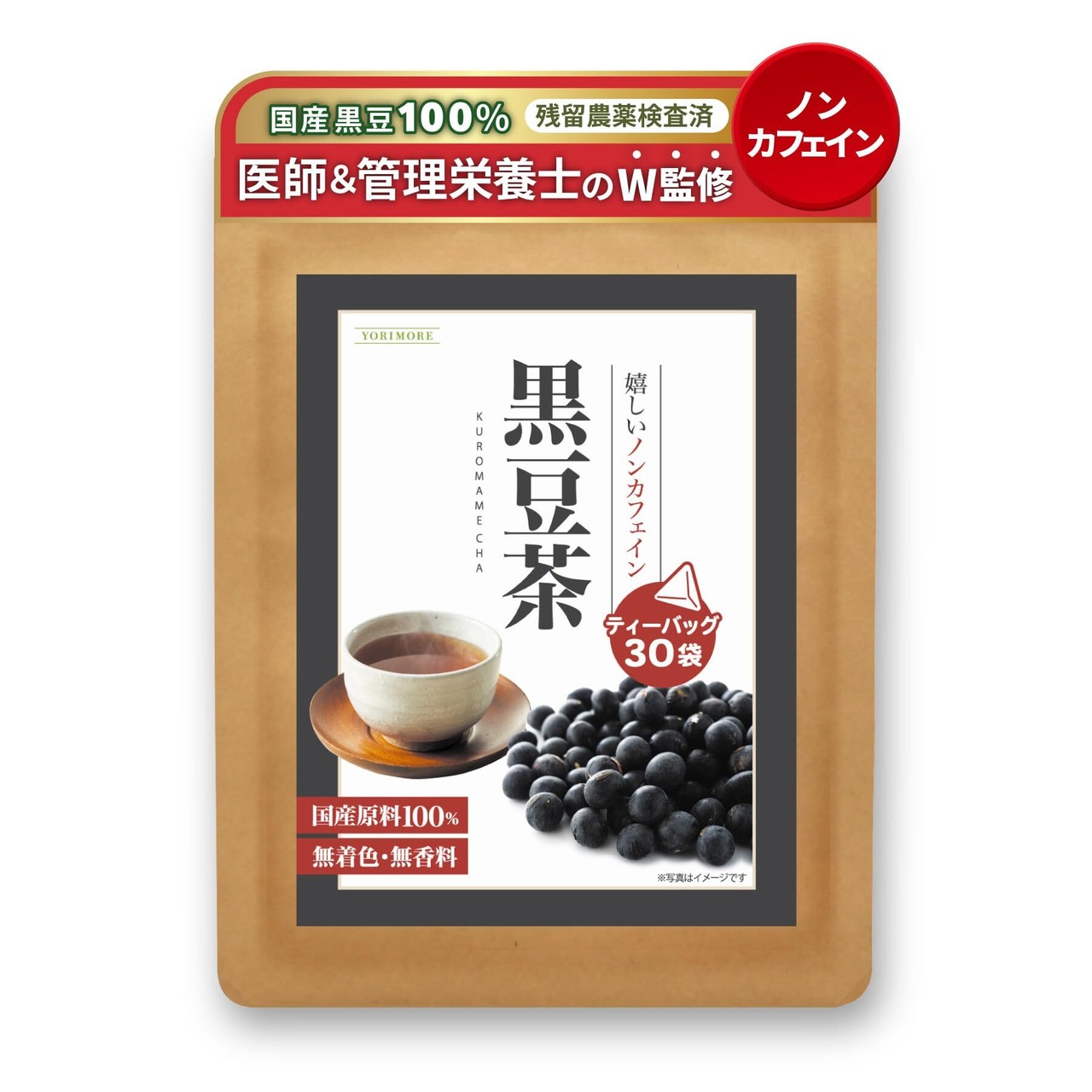【医師&管理栄養士のW監修】 黒豆茶 国産 30包 ノンカフェイン 残留農薬検査済み ティーバッグ 【香り引き立つ特殊焙煎】 ノンカロリー 煮出し 水出し 健康茶 (30包)