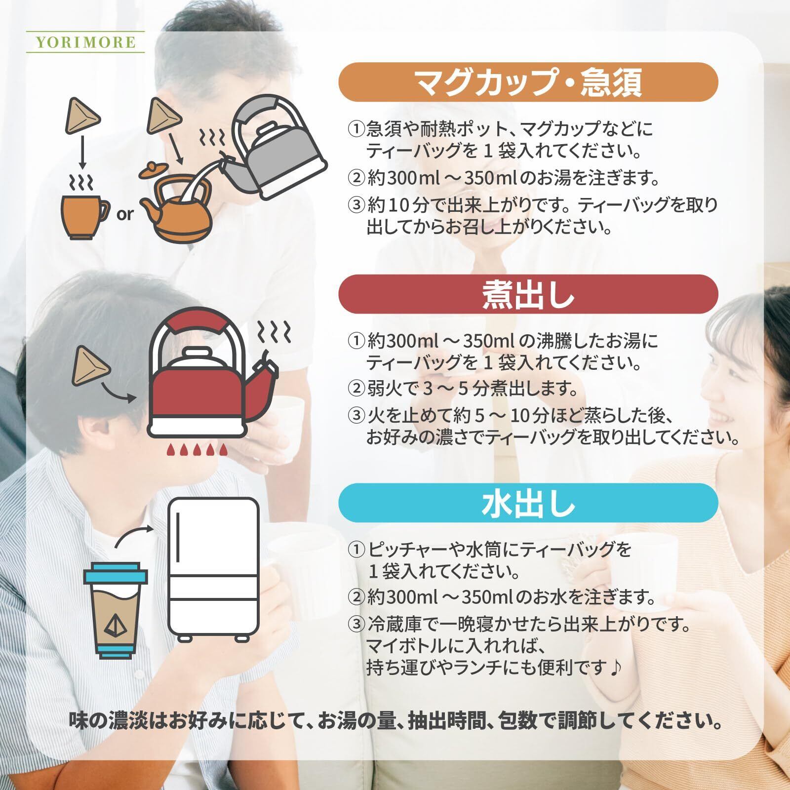 【無漂白ティーバッグ使用】材質に漂白工程のない不織布を使用する事で、毎日安心して続けていただけます。