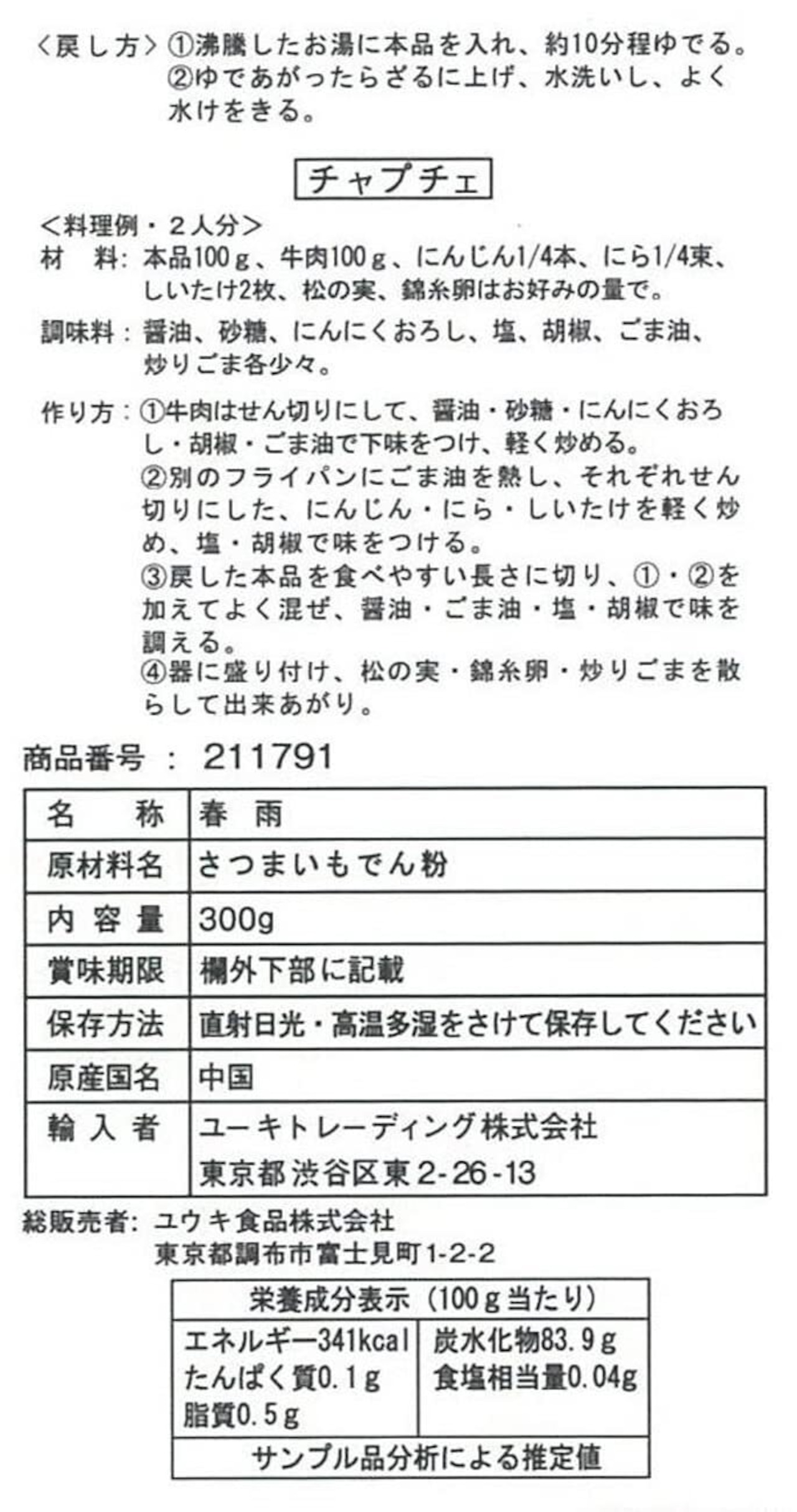 ユウキ食品 韓国料理用 春雨(タンミョン) 300g
