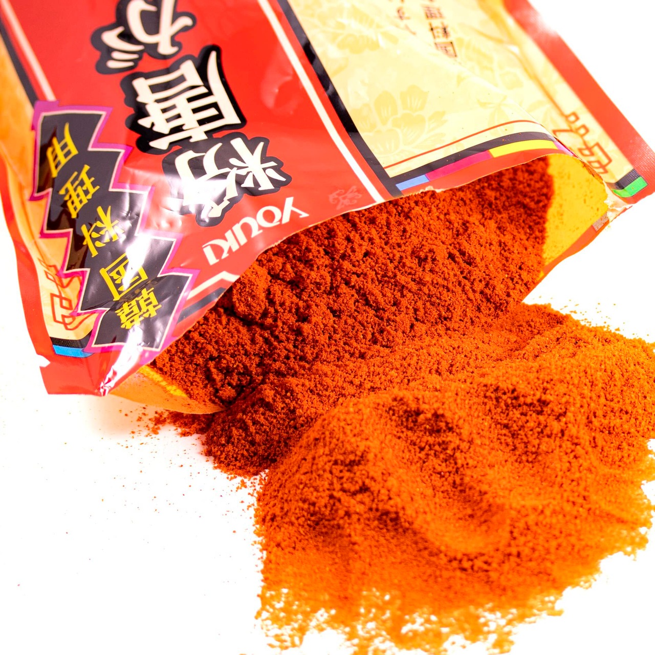 色鮮やかで香り高く、甘みがあるのが特徴です。韓国料理に使いやすいように粉状にしました。中国産。