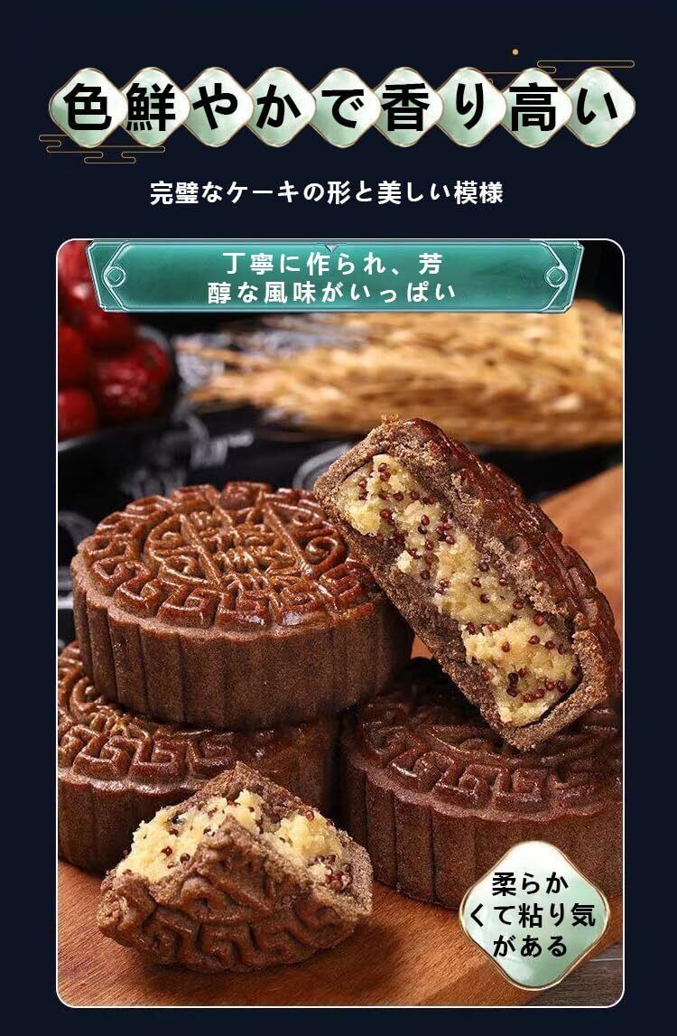 【伝統的な職人技、厳選された原材料】伝統的な職人技、厳選された高品質のそば粉、黒全粒小麦粉などの原材料を使用し、科学的に配合され、洗練され、完璧を目指しています。生地の混合、皮作りから詰め物、焼き上げまで、すべての工程が厳密に管理され、すべての月餅が高品質基準を満たすことができるようにしています。皮は薄く、中身は厚く、味は美味しく、色、香り、味が本当に素晴らしいです。