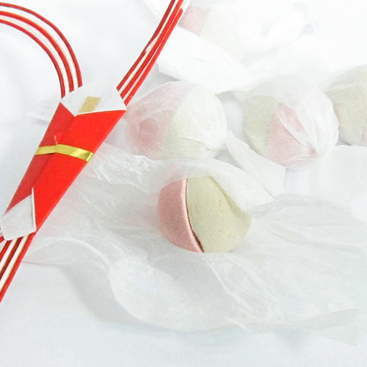 御結婚 など様々な お祝い にふさわしい 紅白 の 契り菓子 。お慶びの日 にピッタリの、紅白の丸くて可愛い 和三盆糖 の お干菓子 です。