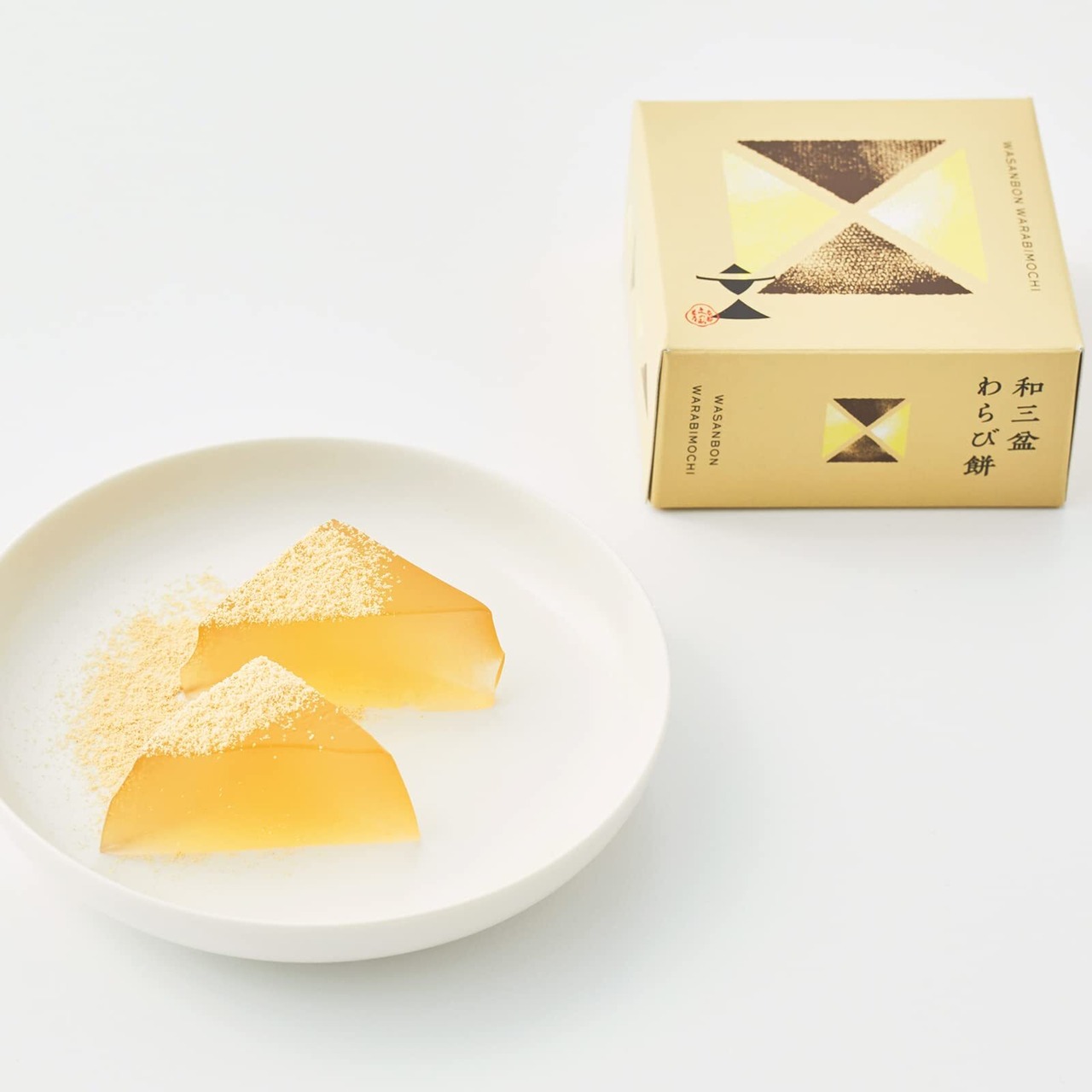 すっきりとした甘みが特徴の和三盆糖と三温糖をブレンドし、風味・色・食感にこだわった「和三盆わらび餅」と、宇治抹茶をブレンドした抹茶きな粉をたっぷりかけてお召し上がりいただく「抹茶わらび餅」の2種をセットにした詰合せです。
