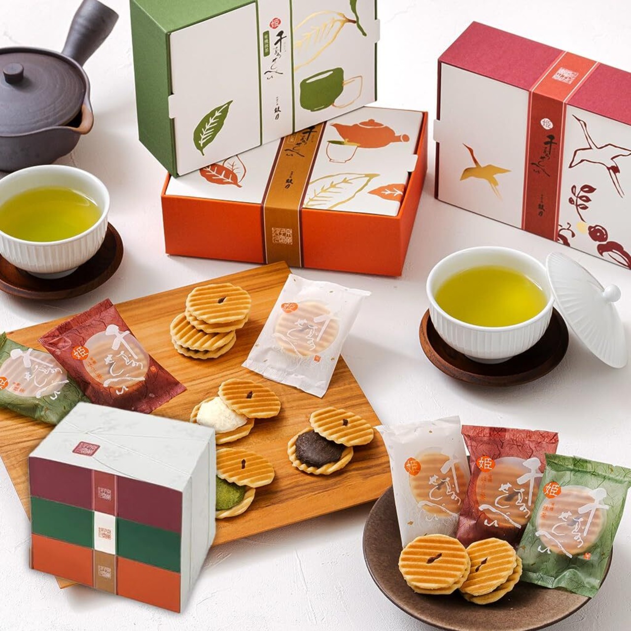 姫千寿せんべい 三段箱(シュガークリーム、有機抹茶、有機ほうじ茶 各12枚入) 鼓月/お中元 夏ギフト 一口サイズ 和菓子 スイーツ 京都 お土産 老舗 お供え お祝い 内祝い お返し ギフト 贈り物 ご自宅用 ご家庭用 お取り寄せ