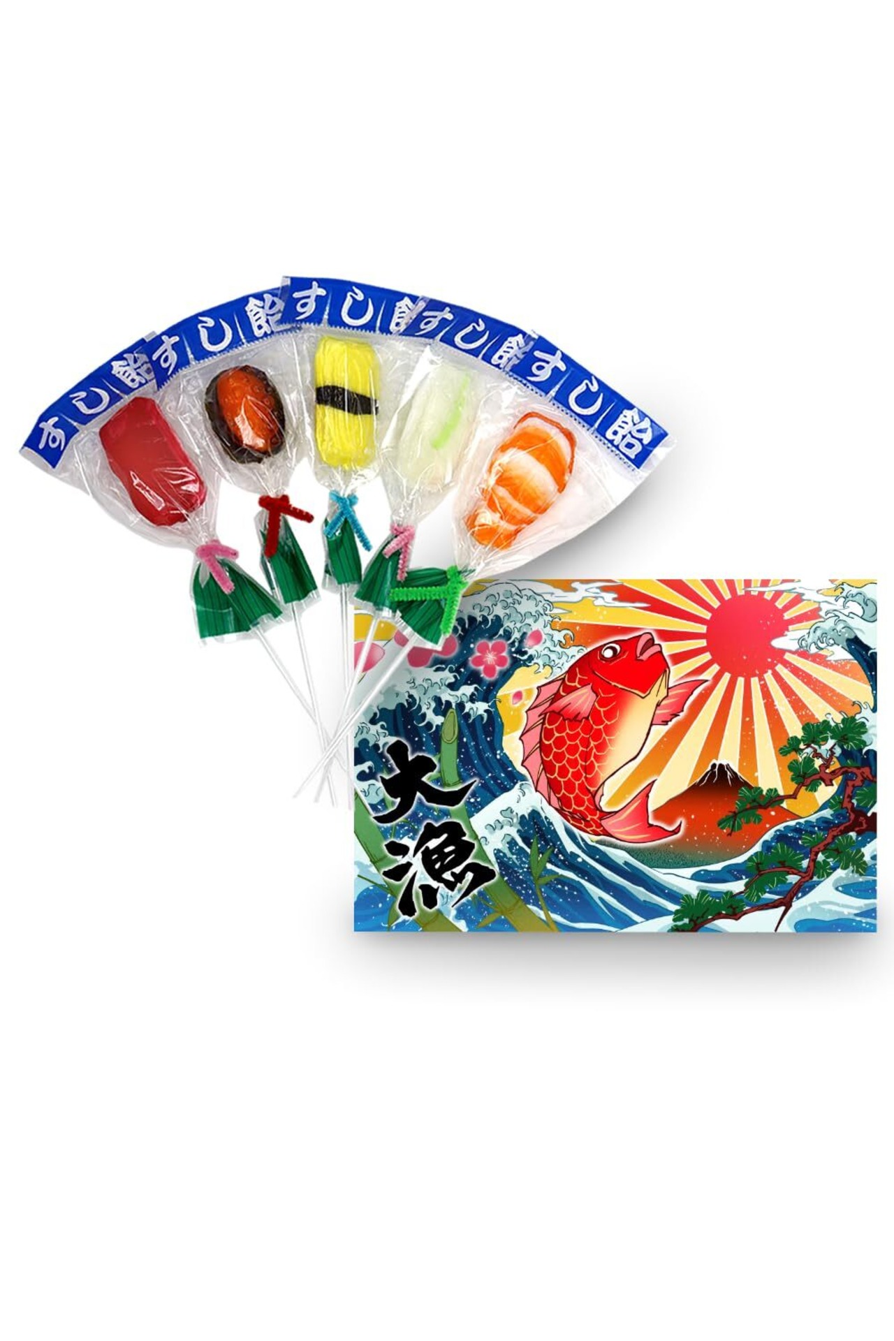 寿司飴(5種類各1本)5本と大漁旗ポストカード1枚 のセット