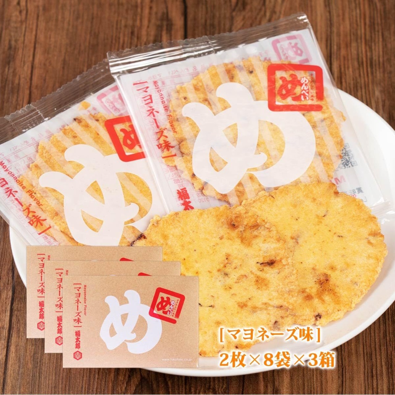 [山口油屋福太郎] めんべい (明太子 せんべい) マヨネーズ味 2枚×8袋×3箱セット 福岡土産 ×3個