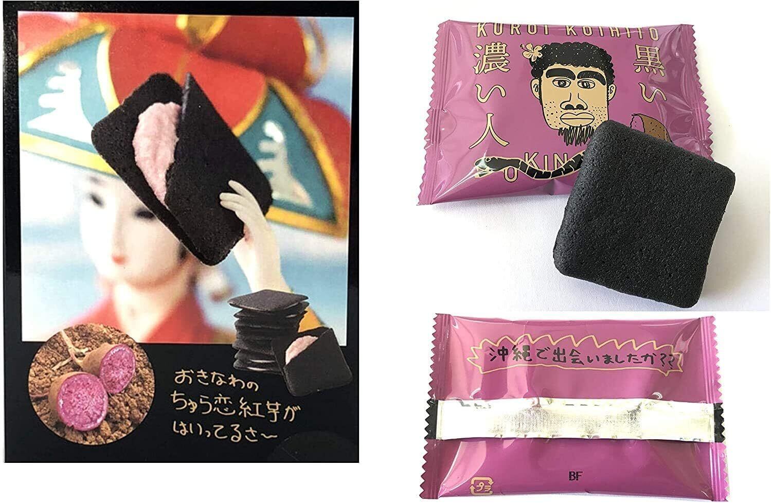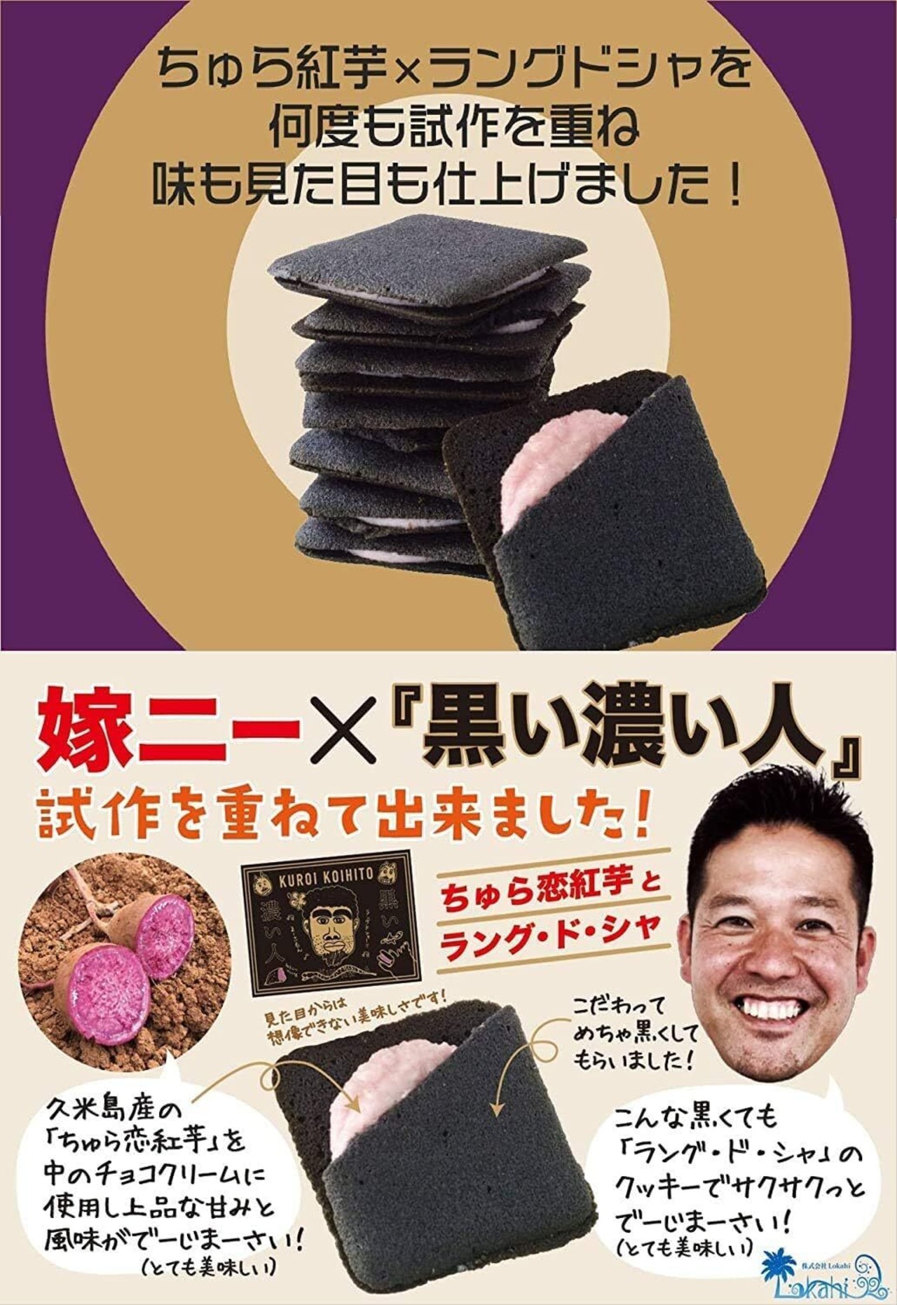 黒い濃い人 ラングドシャ 【黒い濃い人缶バッジ付】 3個セット クッキー 紅イモ 久米島産 ちゅら恋べにいも使用 沖縄 お土産 プレゼント ギフト 人気 お返し プレゼント 黒い濃人 嫁ニー 紅芋 ポテト さつまいも スイーツ 平良司 (3個セット)